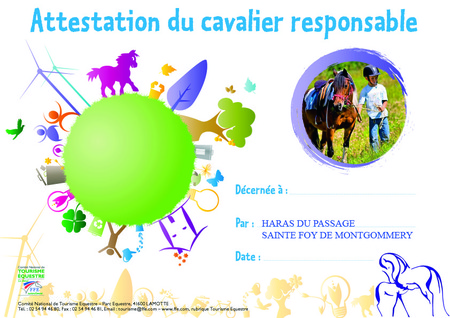 Les cavaliers signataires de la charte et qui s'engagent dans une démarche personnelle se voient attribuer un diplôme de "cavalier responsable" .