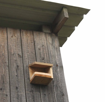 fabriqué avec une bûche trouvée dans la réserve de bois de chauffage, qui a été creusée par un Pic, et il est placé sur une pourtre du toit de la maison